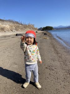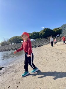 気になる貝殻を見つけて拾ったり、嬉しそうに砂浜を走り回って楽しむ子供たちᕷ*.°